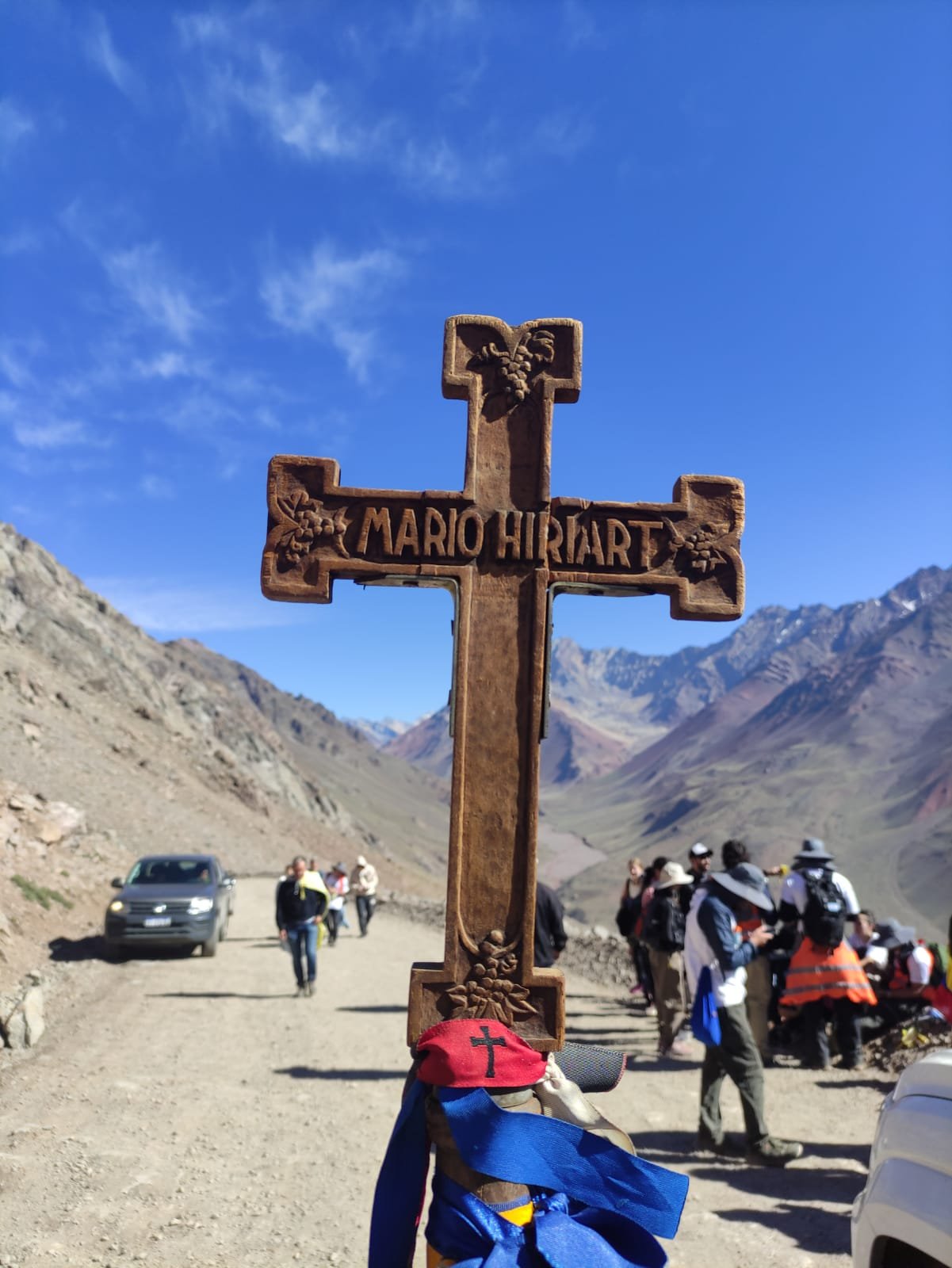 Hasta que llegamos al Cristo Redentor, que nos recibe apuntando al cielo con una mano y con la otra sosteniendo la cruz, yo pienso que Él carga mi cruz, la mayor de ellas es el temor por lo que se viene, porque desde el Cristo en adelante le toca a Chile, ahora somos los curas, seminaristas y universitarios chilenos los que tenemos que trabajar para que todo salga bien. Eso genera un poco de temor, pero bueno, no hay tiempo para tanta reflexión, simplemente hay que bajar del Cristo, esperar a Carabineros en la ruta, cruzar la aduana y llegar al cuartel del Ejército Portillo, donde dormiremos con colchones y tendremos una cocina grande para preparar nuestros alimentos. Aquí se acaban las carpas, pero nos toca cocinar.